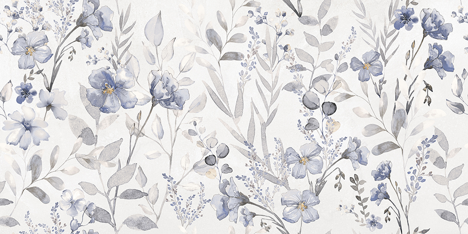 En formato 60×120 cm, la delicadeza de su diseño es la señal distintiva de la colección Sakura de Porcelánicos HDC. Tonalidades azules y grises con motivos florales con ligeros brillos que dan profundidad al revestimiento.